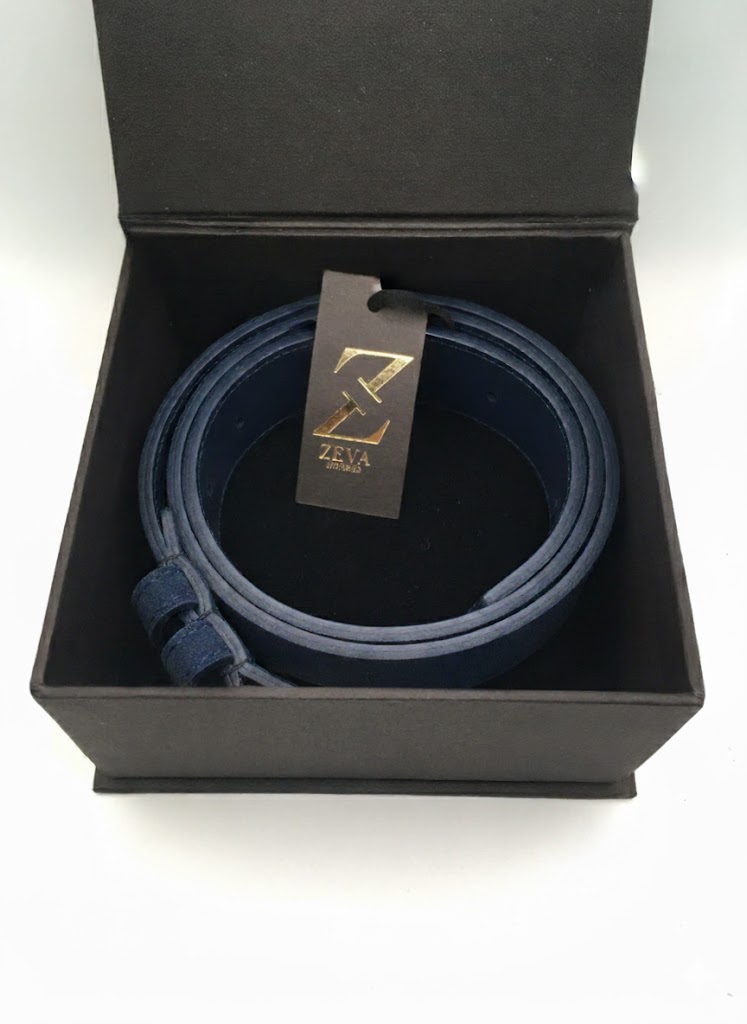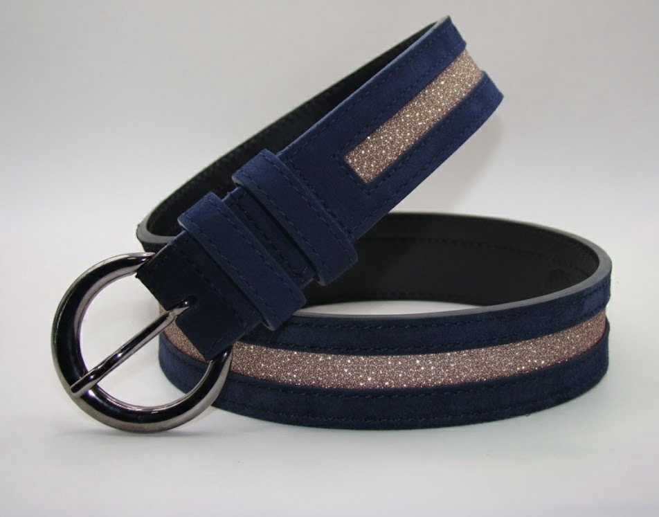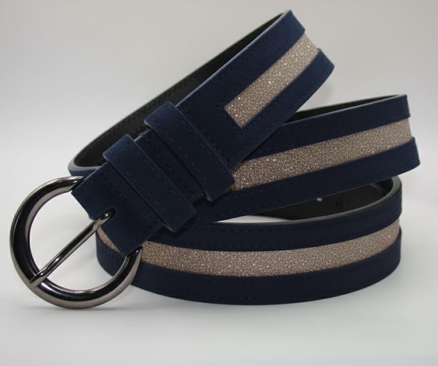 O modelo de cinto Evangeline Blue Rose Gold é de pele genuína eco-friendly.